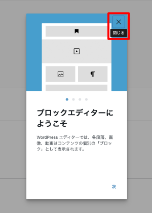 初回アクセス時に、下記のようなウィンドウが出た場合は、右上の「閉じる」をクリックしてください。