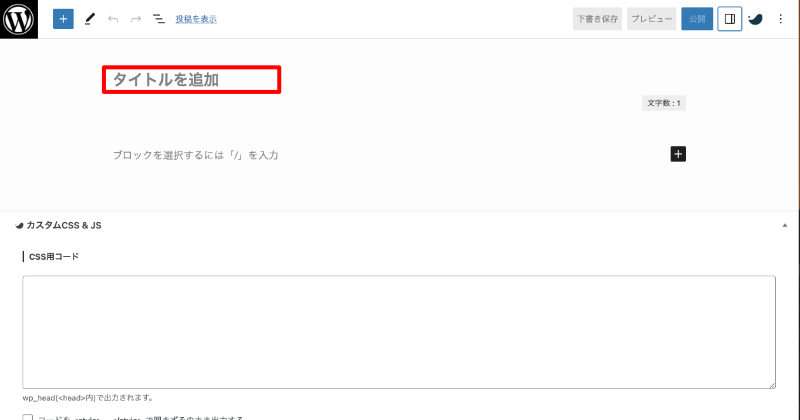 作業途中で保存して「公開」させたくない場合は、「公開」ボタン左側の「下書き」をクリックすると、そこまでの作業が下書きとして保存されます。