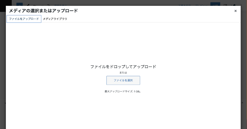 「アップロード」か「メディアライブラリ」から、表示したい画像を選びます。「アップロード」は画像を新しく追加したい場合で、「メディアライブラリ」はすでにアップしてある画像から選択する場合に使用します。