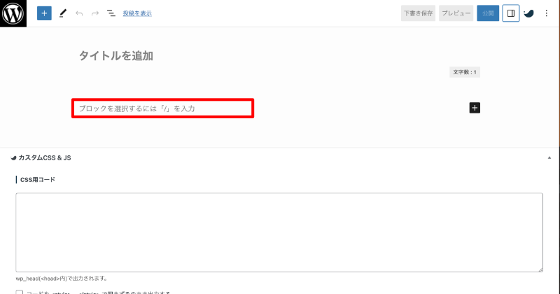 「ブロックを選択するには「/」を入力」とある部分(この部分を「ブロック」と言います)に、文章を入力します。(「/」を入力する必要はありません)