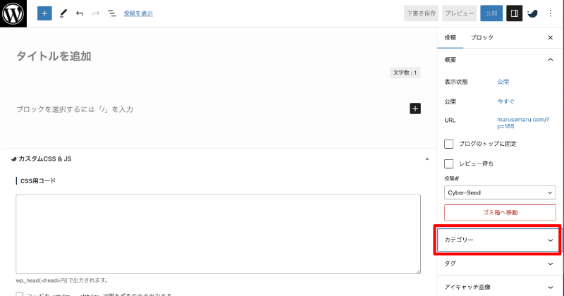 「カテゴリー」という項目をクリックすると、設定したカテゴリーが出てきますので、チェックしてください。